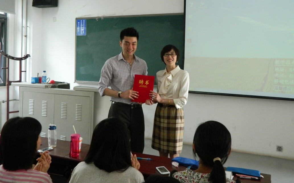 5月16日上午,乐鱼(中国)在沙河校区学院楼7号楼112举行聘书授予仪式,特聘加拿大籍知名英语教师Jerry Dai为学院客座教授,王晓红院长为Jerry Dai颁发了聘书。随后Jerry Dai教授为大家献上了一场生动精彩的语音讲座。