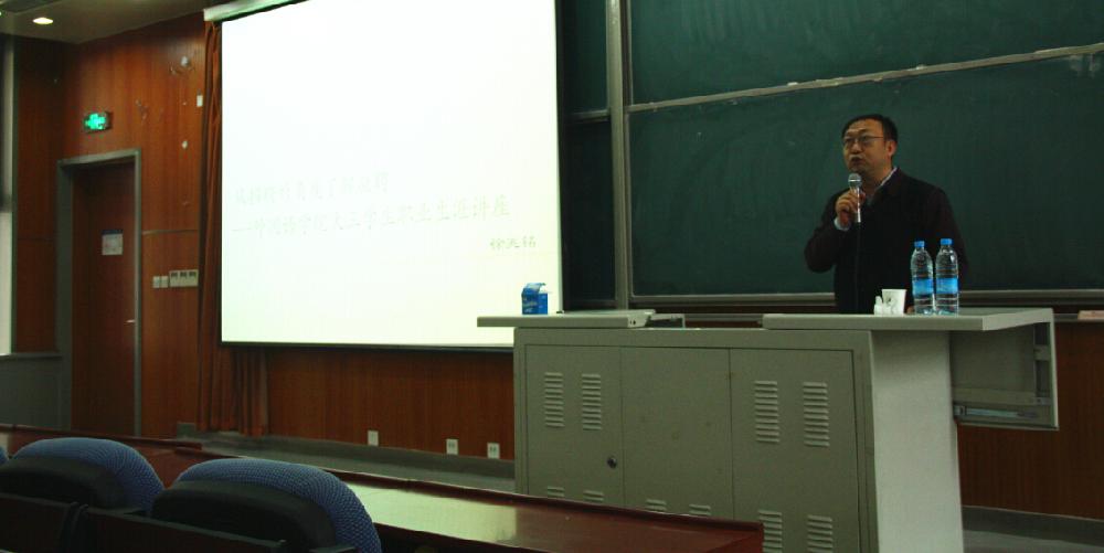 2015年11月11日下午13点30分,乐鱼(中国)党总支书记徐兆铭教授在沙河校区学院3号楼222教室为2013级学生带来了一场精彩的职业生涯指导讲座,讲座主题为“从招聘的角度了解应聘”,学院党总支副书记徐芳老师、2013级学生党支部书记赵学辉老师与2013级学生参加了此次讲座。