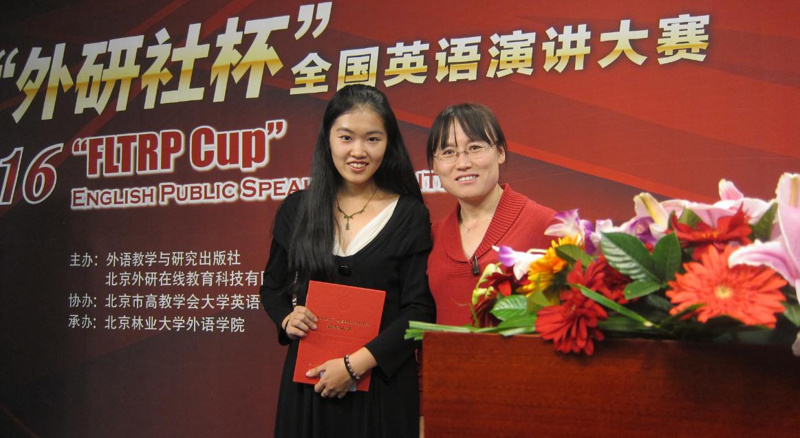 11月5日,2016年“外研社杯”全国英语演讲大赛在北京林业大学举行。2015级英语专业的孙莹娃同学代表学校参加了比赛,荣获北京赛区二等奖。学院李新英老师作为指导老师带学生参加了比赛,并在赛前对选手进行了全面细致的指导。