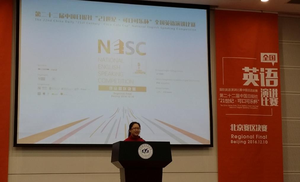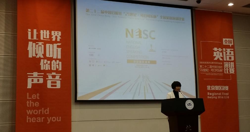 第22届中国日报社“21世纪·可口可乐杯”全国英语演讲比赛北京赛区决赛于2012年12月10日在北京航空航天大学举行。本次大赛的题目是“人与科技:勇敢新世界”(Man and Technology: The Brave New World)。来自北京市多所高校共35名选手参加了比赛。