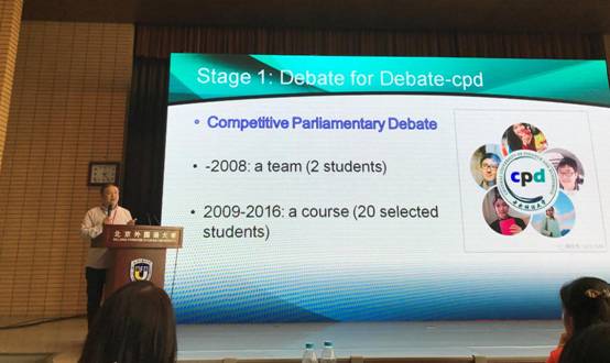 我校英文辩论指导教师高晓宇老师以全国总决赛副裁判长的身份参与了赛事的评审工作,并作为去年首届全国高校思辨课堂说课大赛的特等奖获得者以评委的身份于5月19日评审了第二届全国高校思辨课堂说课大赛。5月24日,作为在全国高校中最早开设辩论课程的高校之一,我校受邀参与了在北京外国语大学举办的首届全国英文辩论课程研讨会,高晓宇老师与来自美国辩论协会的专家学者和国内其他高校的教师代表,分享和交流了英文辩论课程的课堂设计。