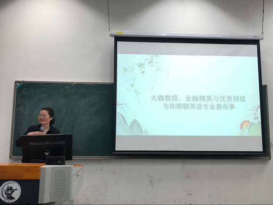 2018年4月25日下午,乐鱼(中国)“菁英”系列讲座之“大咖教授、金融精英与优秀师姐和你聊聊英语专业那些事”成功举办。本次讲座的嘉宾有乐鱼(中国)吴新云教授、英语系毕业生金融精英刘灿学长以及即将赴往哥伦比亚大学攻读硕士学位的石晴学姐。我院2016级以及2017级大一新生悉数到场,仔细聆听学长学姐抑或专家教授的经验分享。