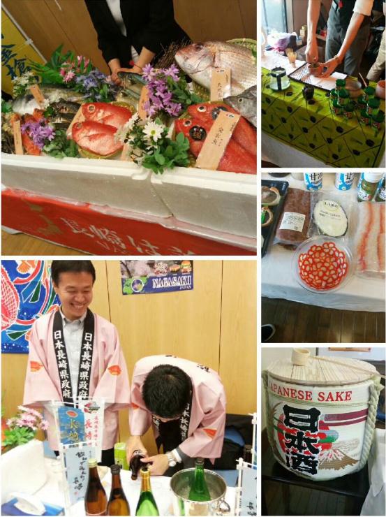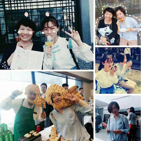 伊藤老师指导两位同学与各个台位的日本负责人用日语进行交流,不仅品尝到极具特色的寿司、刺身、咖喱饭、鲷鱼烧等美食,还从各位日本友人那里了解到更多日本料理的独特工艺与日本各个地区的特色饮食文化。师生三人还一同观看了蓝鳍金枪鱼的现场解体展示、体验了茶道并参加了日本酒文化讲座,在这个极富情趣的环境中度过了一段充实而又愉快的时光。