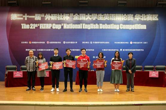 “外研社杯”全国大学生英语辩论赛由共青团中央学校部、全国学联秘书处、北京外国语大学主办,外研社承办,创办于1997年,在国内英语赛事届享有极高的参与度和知名度。本届“外研社杯”英语辩论赛从去年10月起在全国500余所高校启动校园选拔赛,经华东、华西、华南、华北四个赛区的地区决赛筛选出每个赛区排名靠前的队伍晋级全国总决赛。在4月中旬于中国石油大学(北京)举办的“外研社杯”华北地区赛中,我校代表队以87所院校中排名第六的成绩获得了华北赛区一等奖,魏葳、龙彦宇两位同学均获最佳辩手称号。