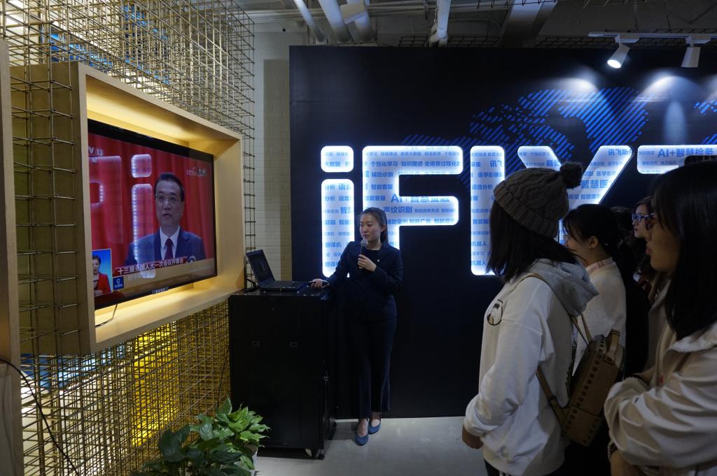下午一点半,在公司的产品展示厅,实践活动围绕“体验人工智能语音系统”这一主题顺利展开。工作人员首先介绍了科大讯飞公司的基本情况,包括公司的发展历程、主要研究方向和实时产品使用数据等。随后,工作人员详细介绍公司的最新产品。在手机端APP产品方面,工作人员为我们演示了公司开发的软件在手机上是如何实现从语音到文字的智能识别和转换。人工智能语音识别技术也能用于对产品的智能控制——用户只需要通过口头指令即可实现对家用电器的控制,也能用于“消费者生活”、“教育”、“医学”、“司法”、“政务”等方面。这极大地方便了用户的日常生活,提高了工作效率,特别是对车载产品的智能语音控制,极大提高了驾车过程中的安全性。