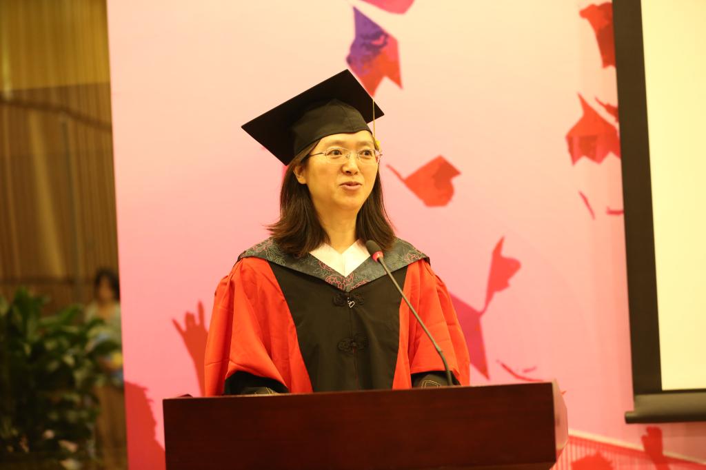 上午8点50,伴随着庄严嘹亮的国歌声,毕业典礼正式拉开帷幕。黄振华院长首先致辞。她从语言学习的特点入手,对2019届毕业生数年来的勤学苦练给予了充分的肯定,并从师长的角度表达了对毕业生们的深深祝福,对毕业生的未来给予了厚望,并提出了人生建议。她期待同学们在今后的生活工作中继续努力,书写属于自己新的人生辉煌。