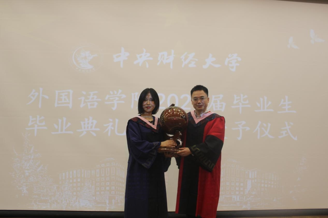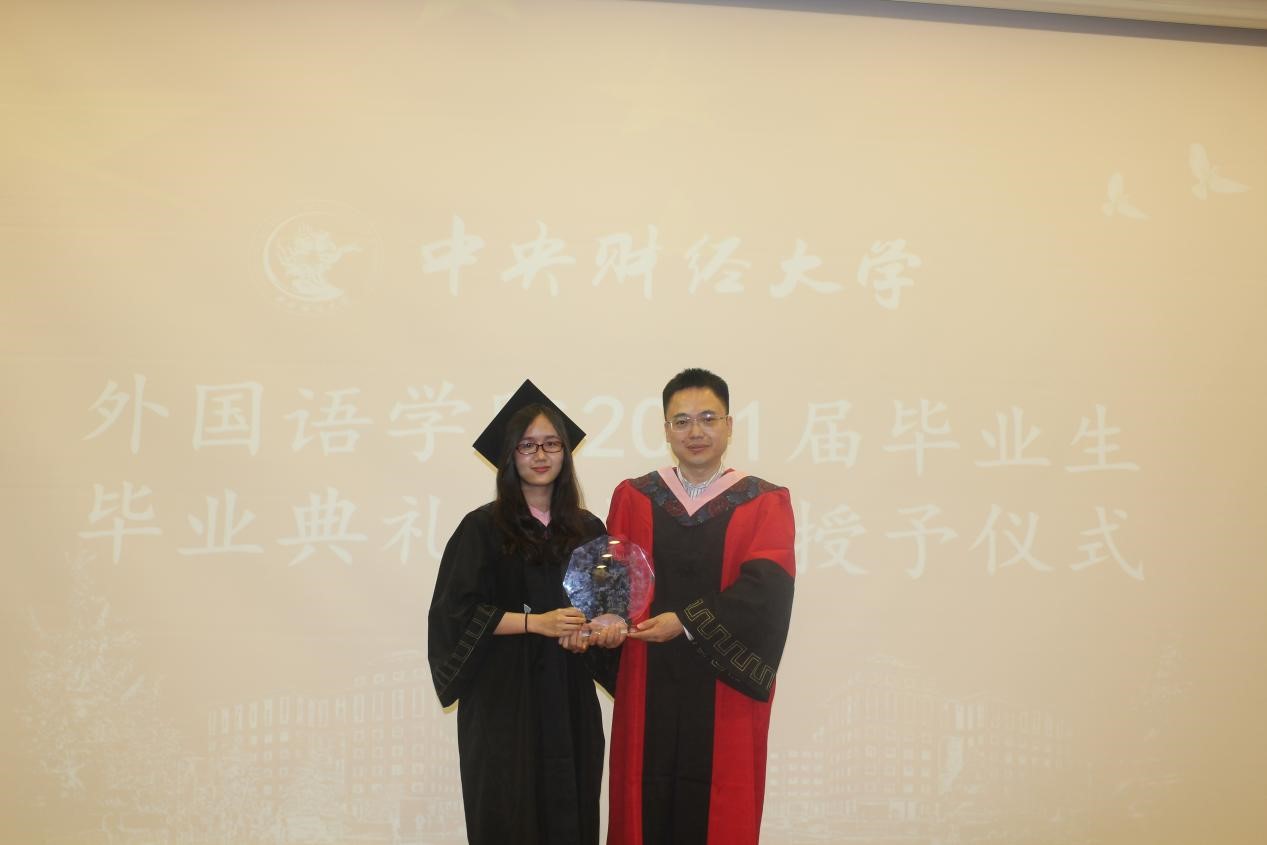 接着,由班主任代表黄丹婵老师宣读、日语系主任李炜老师颁发市级优秀毕业生奖项;班主任代表刘峰老师宣读、翻译系主任张润晗老师颁发校级优秀毕业生奖项。