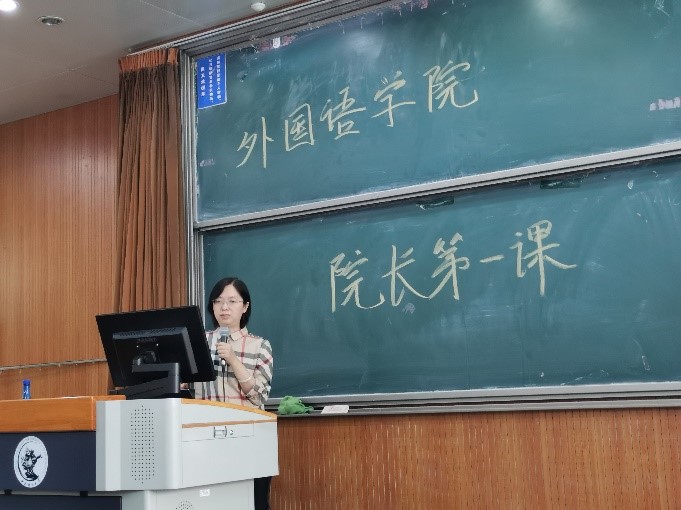黄院长首先结合中国共产党成立一百周年的时代背景向同学们强调,作为一个外语学习者,我们应了解历史潮流中外语教育的发展进程、把握百年党史中不同时期外语教育特点。