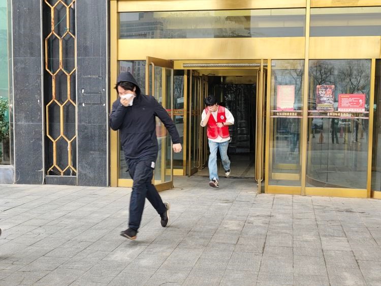 各工作组听到警报后迅速到达各自工作岗位,打开宿舍门,在室内组织学生用湿毛巾捂住口鼻,弯腰跑出模拟火场到达指定地点集合。紧急救护组在宿舍一楼大厅集合待命,准备好急救医疗设备。疏散组负责指导学生有序撤离。学生到达集合点后,由各宿舍长清点应到人数和实到人数,并报给相应负责老师。保卫处老师全程使用秒表计时,并宣布演练圆满结束。