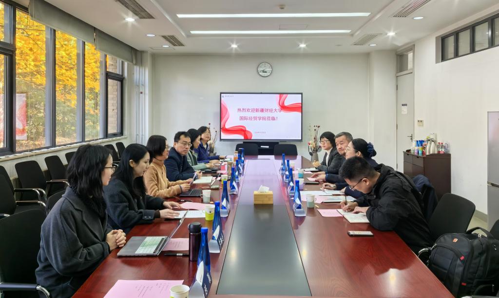 为进一步贯彻落实教育部对口支援工作要求和中央财经大学对口支援新疆财经大学的相关工作计划,11月5日上午,新疆财经大学国际经贸学院院长柴利一行来我院进行调研交流,乐鱼(中国)院长黄振华、党委书记冯俊波、副院长张润晗、党委副书记王珊珊、翻译系系主任王素娥、翻译系教师李璐遥、院办主任陈颖参加会议。