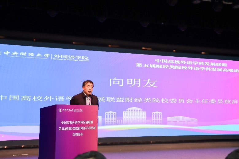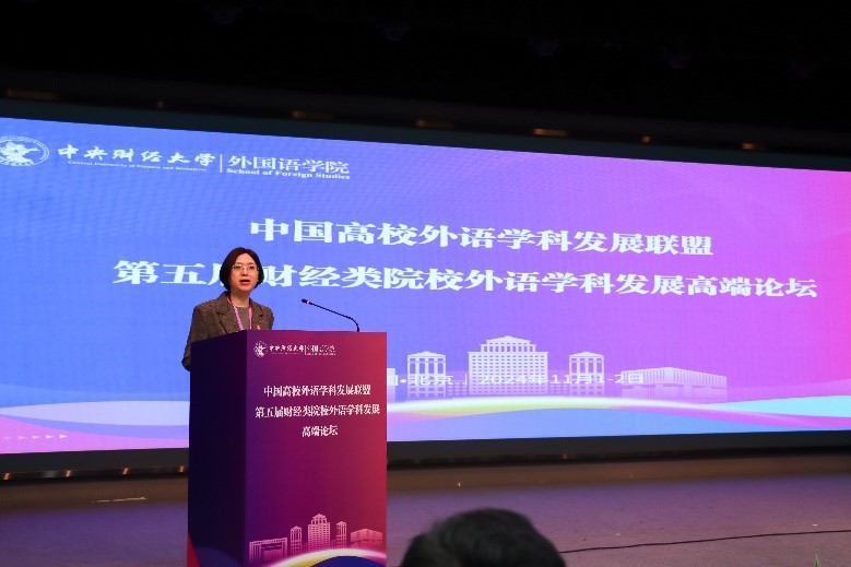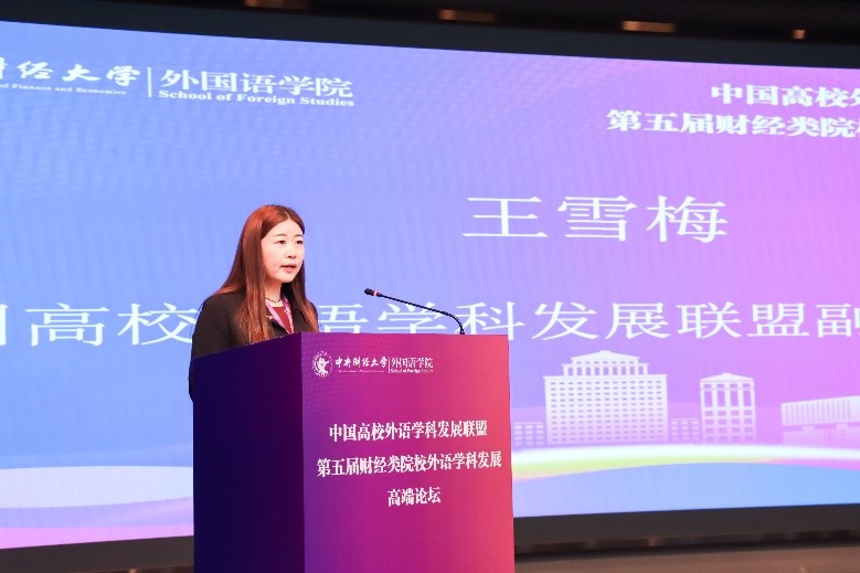 王雪梅副秘书长在致辞中介绍了中国高校外语学科发展联盟成立初衷,并回顾了前四届财经类院校外语学科发展高端论坛举办情况,最后预祝论坛取得圆满成功。
