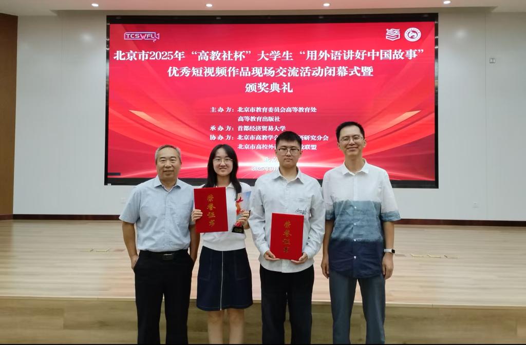 北京市2025年大学生“用外语讲好中国故事”优秀短视频作品征集活动于5月进行校级评审,7月开展北京市级遴选,9月进行现场交流活动。本次优秀短视频作品征集活动以“新时代·新变化——时潮奔涌,青春不凡”为主题,我校选送的短视频作品《When Ancient Shadows Meet Young Light: A Millennial's Quest to Revive Shadow Puppetry》(作者:张奕馨等)在北京市级遴选中荣获特等奖; 《黄河安澜》(作者:崔凯然等)在北京市级遴选中荣获二等奖。