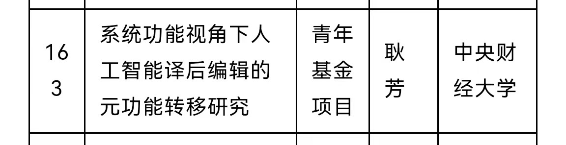 近日,教育部社科司公布了2023年度教育部人文社会科学研究一般项目的拟立项名单,我院耿芳老师主持申报的课题《系统功能视角下人工智能译后编辑的元功能转移研究》成功获得青年基金项目立项。