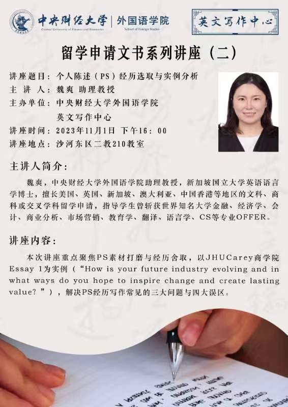 留学申请文书系列讲座(二)预告