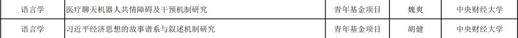 2025年9月25日,教育部社科司公布了本年度教育部人文社会科学研究项目的拟立项名单。我院魏爽老师主持申报的课题《医疗聊天机器人共情障碍及干预机制研究》与胡健老师主持申报的课题《习近平经济思想的故事谱系与叙述机制研究》成功获得青年基金项目立项。这也是胡健老师自2022年获批北京市社科基金青年项目后再次获得高级别立项。