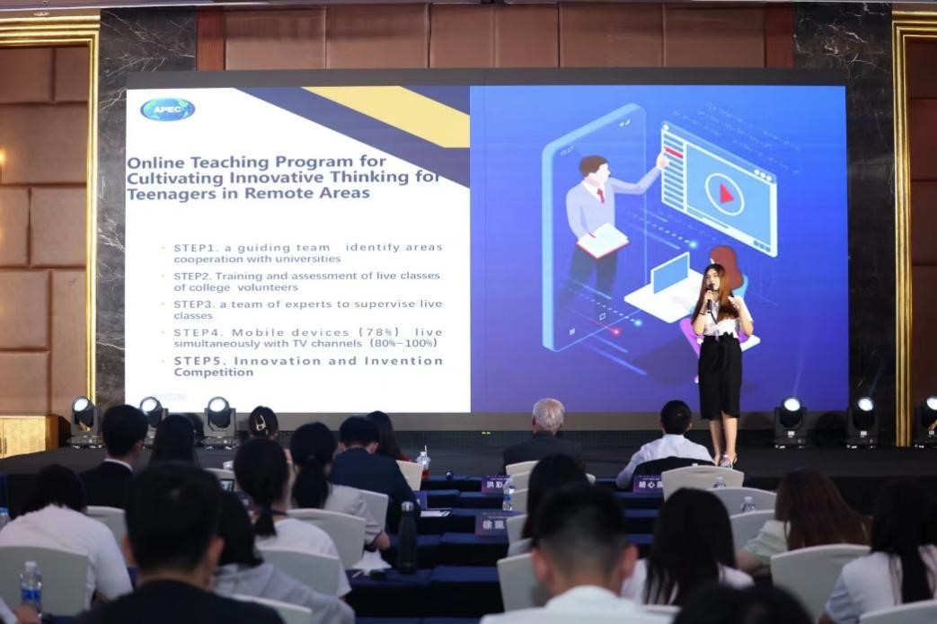 在全国巅峰对决(前六强)环节,我校艾克达木·阿布来提同学入围。她的提案是为偏远地区青少年建立线上学习交流平台,提案共四部分:为偏远地区和大学配对、线上志愿者招募、专家监督、创新发明竞赛。艾克达木·阿布来提同学具有建设性的提案和富有感染力的演讲获得了在场评委老师和选手的一致好评,最终荣获全国一等奖。
